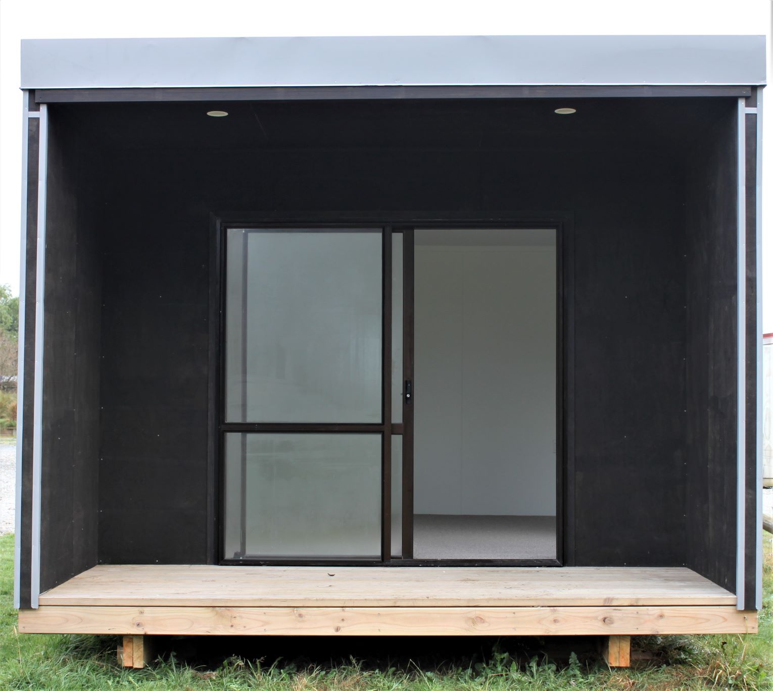 Living space with additional decking, fully insulated, lined and painted with new carpet and underlay with new electrics.